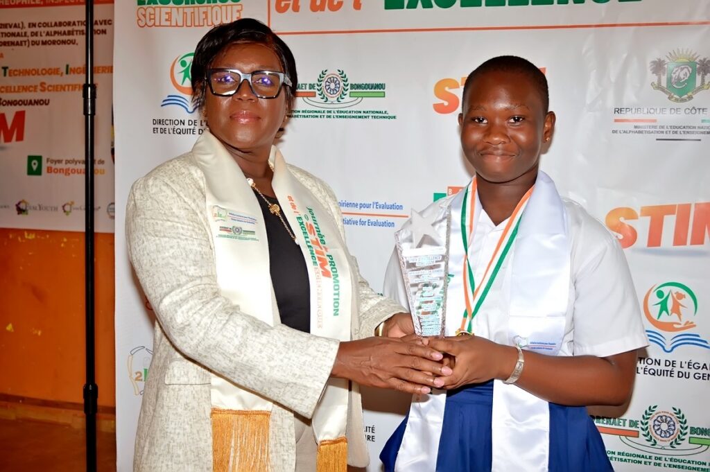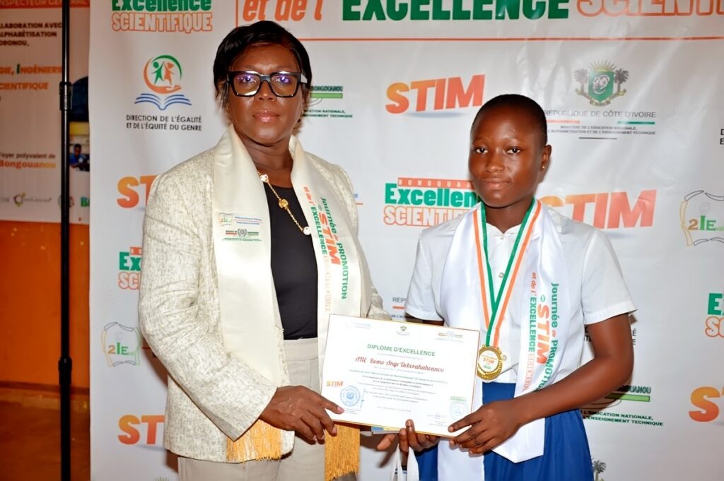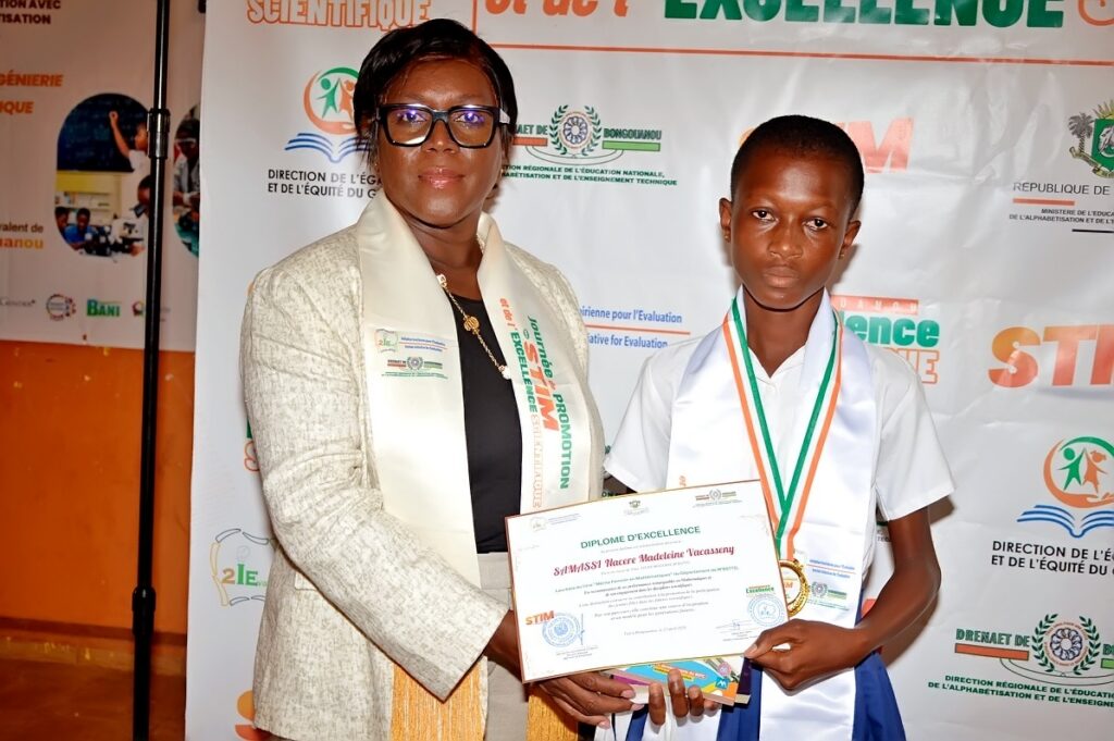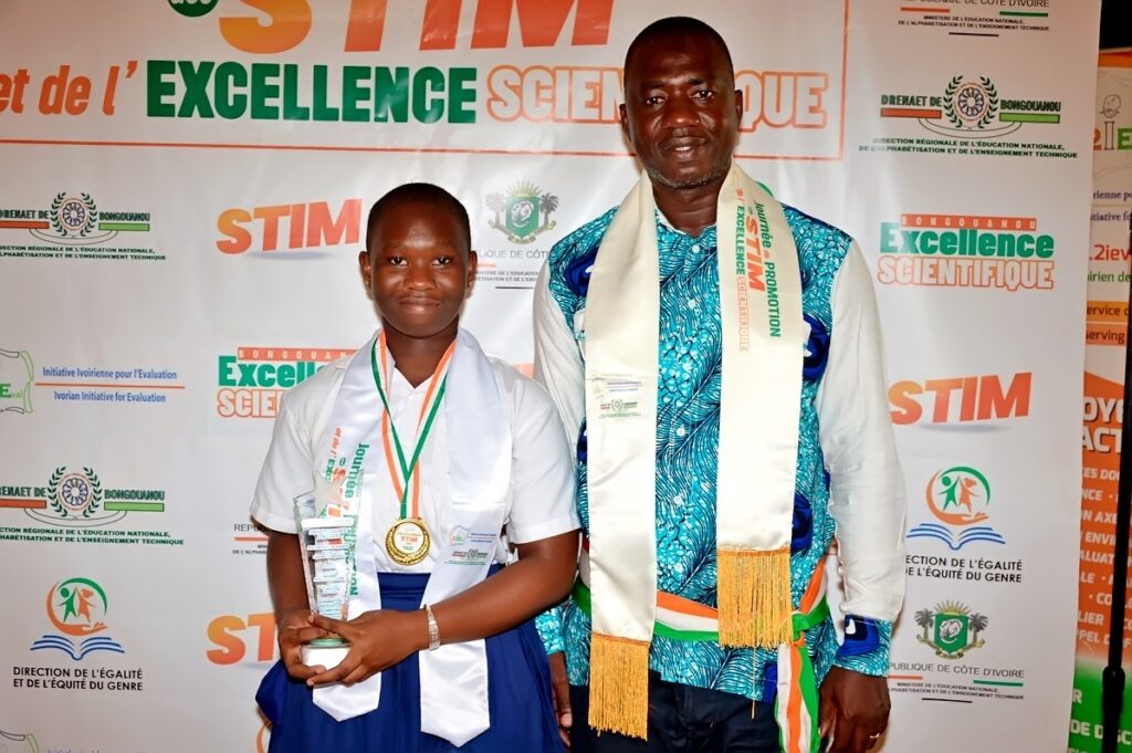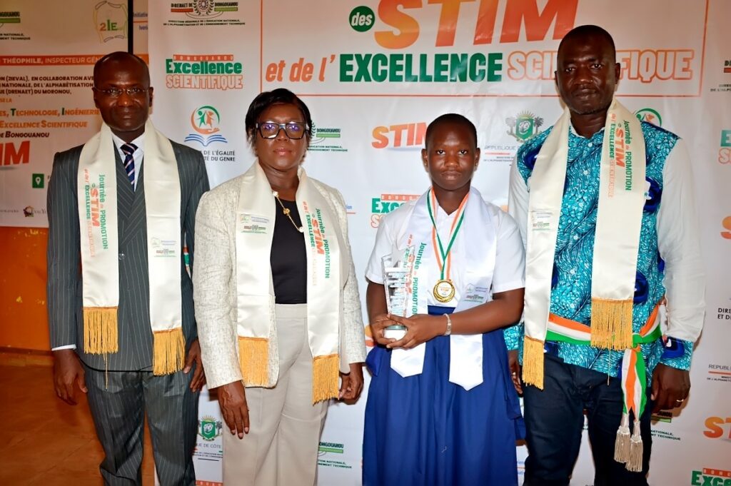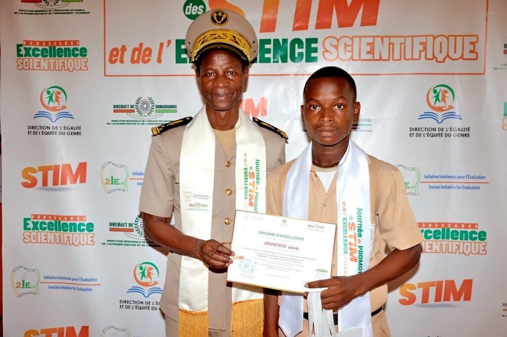 Le jeudi 23 avril 2026, l’ONG Initiative Ivoirienne pour l’Évaluation (2IEval), en partenariat avec la DRENAET du Moronou, a organisé au Foyer Polyvalent de Bongouanou la 1ère édition de la Journée de Promotion des STIM et de l’Excellence Scientifique. Placée sous le Haut Patronage de Monsieur AHOUA N’Doli Théophile, Inspecteur Général d’État, la cérémonie a distingué 37 lauréats des départements de Bongouanou, M’Batto et Arrah, révélant un fait marquant : dans le Moronou, l’excellence scientifique se conjugue désormais au féminin.